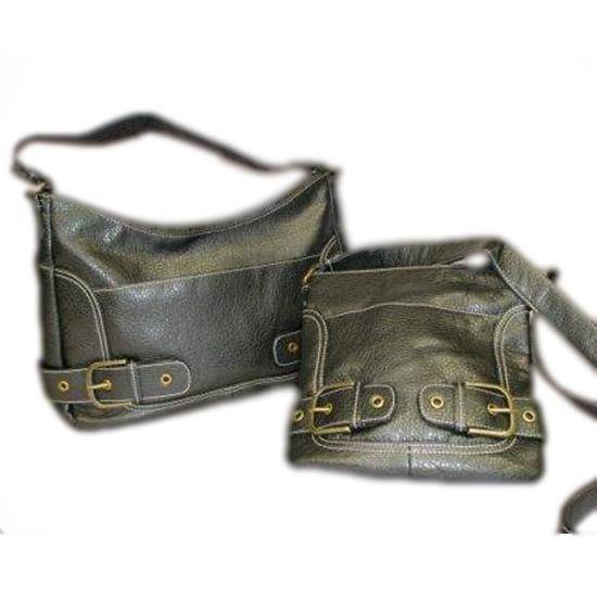 The ladies' shoulder bag features decorative buckle tabs on the front. Contrasting stitching conveys the lady's unique style. The top zipper closure and adjustable strap make it suitable for your everyday use.