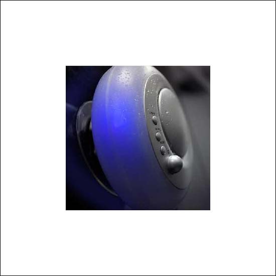 • This displayed shower radio emphasizes its round shape with a control panel on the front.