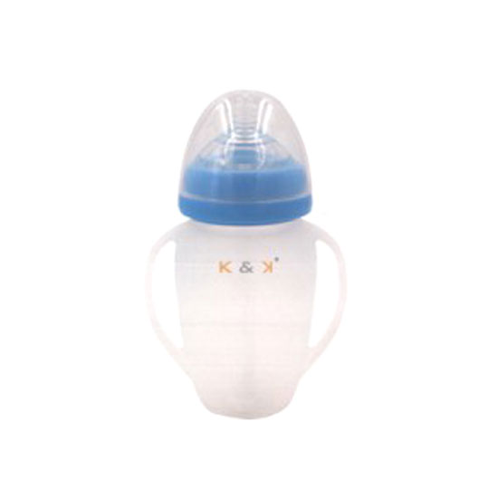 This feeding bottle is designed with dual handles and a straw. It is made of high-quality silicone for a long service life. This reliable silicone bottle is ideal for daily use.