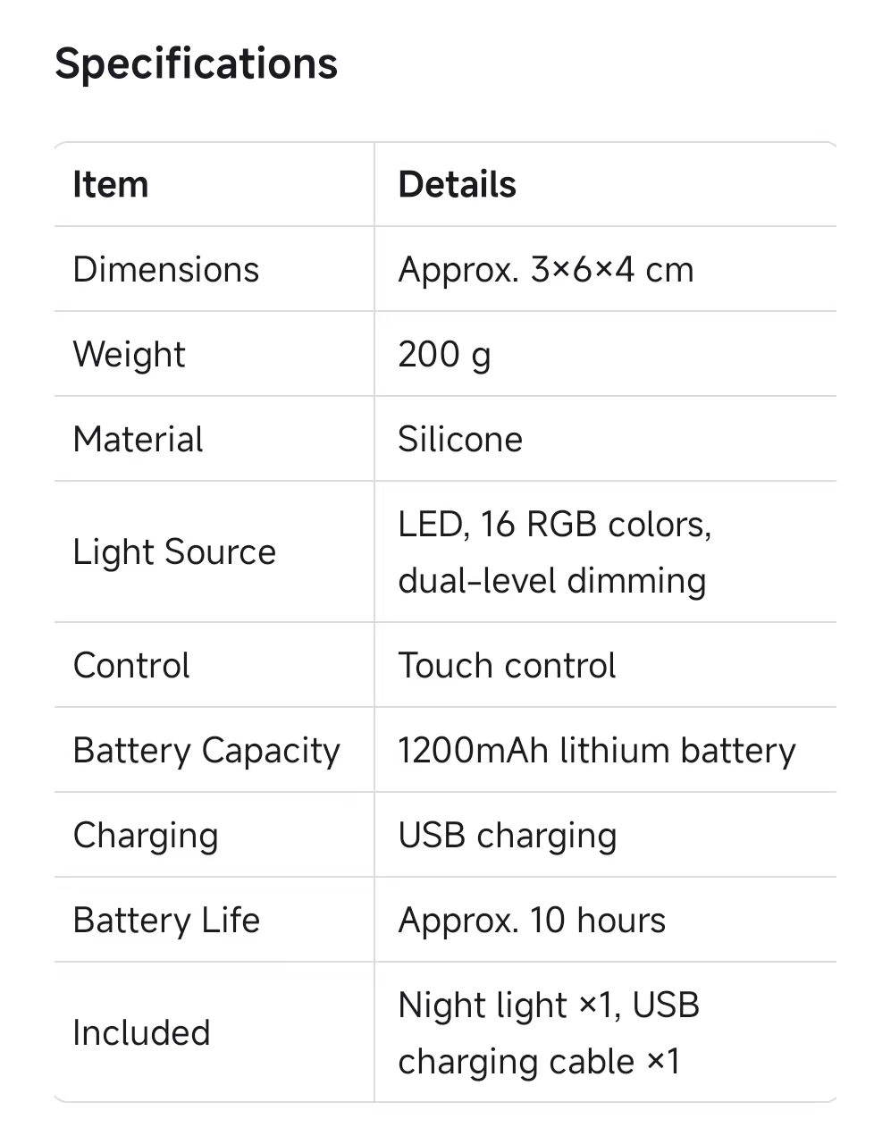 · Dual-Level Brightness: Choose between 50% soft light and 100% bright light to suit different times and needs