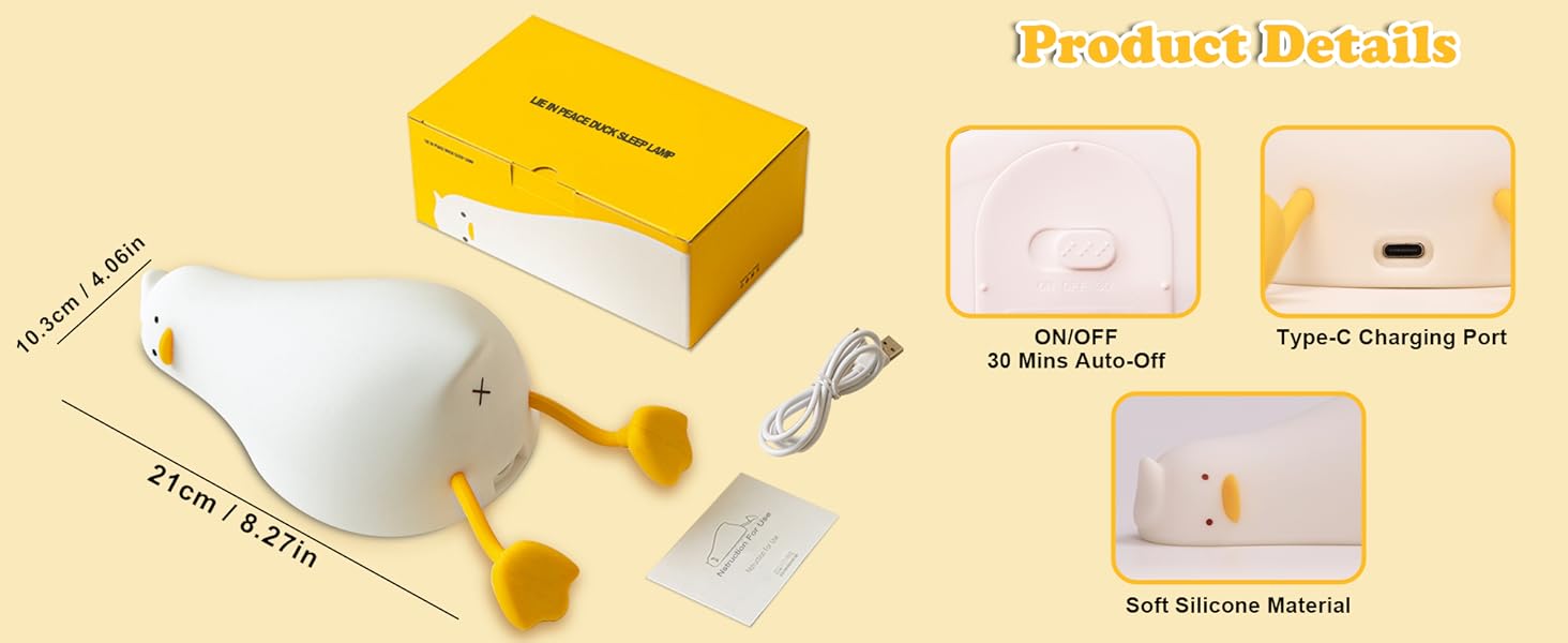 · Cute Duck Design: Lying duck shape with lovely appearance, soft warm light that creates a cozy atmosphere