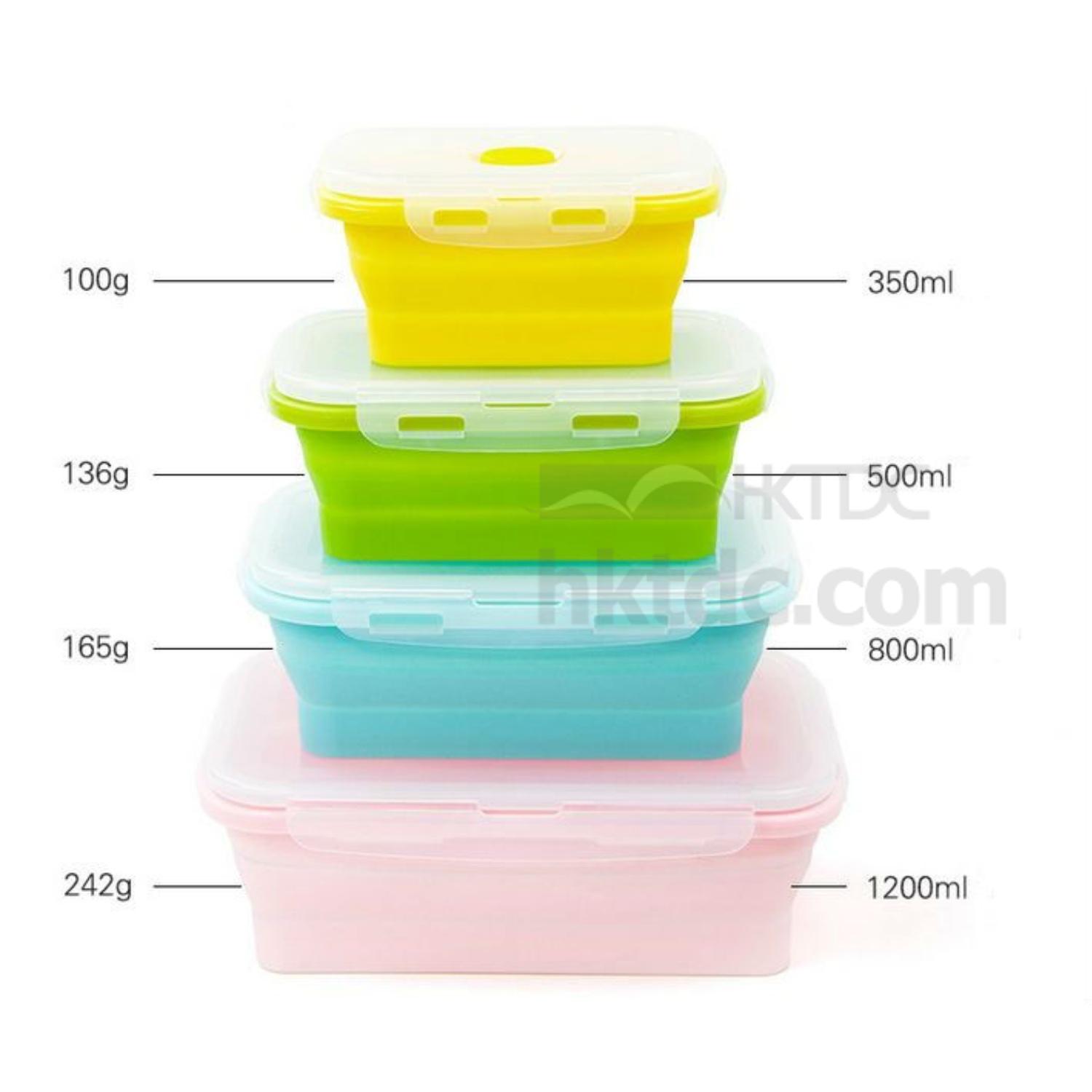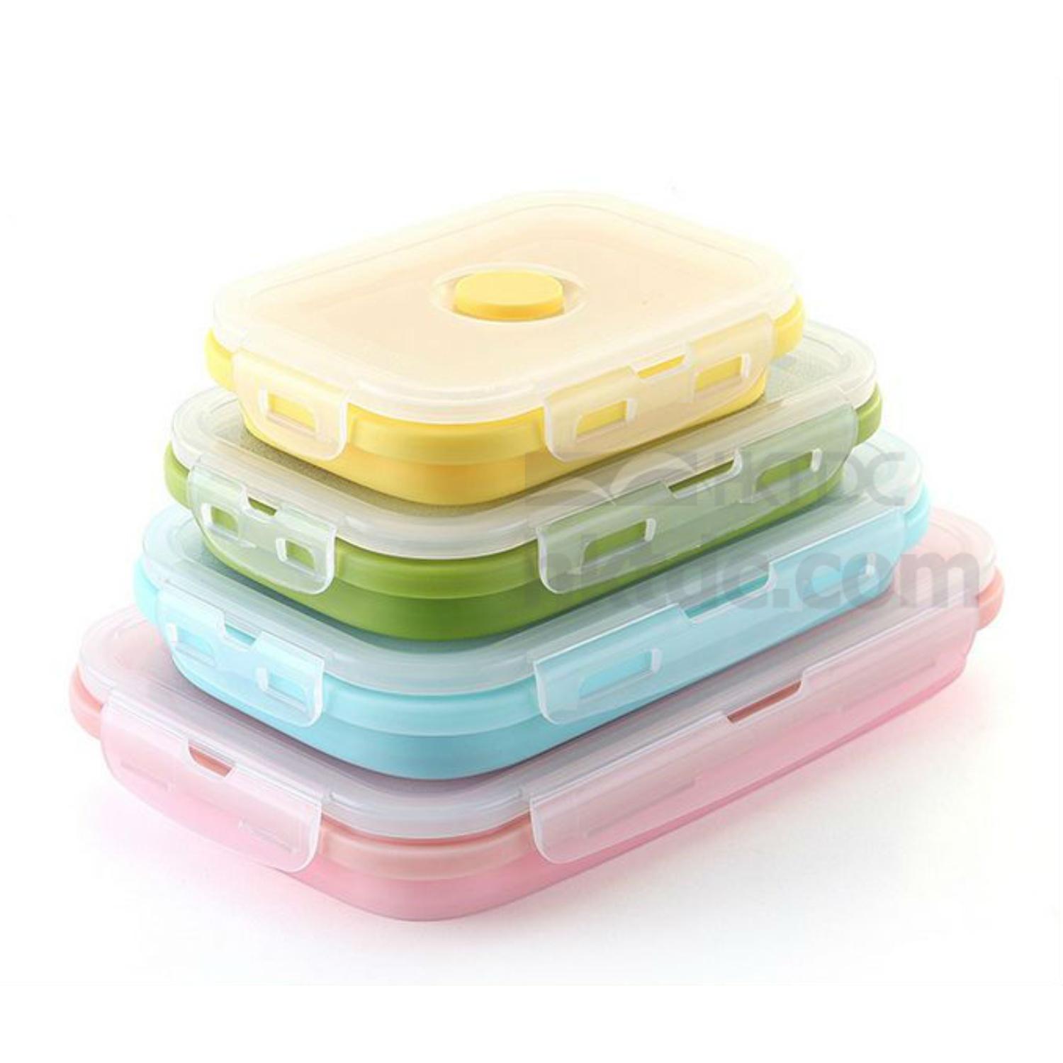 Take your lunch to work or school with this rectangular-shaped silicone lunch box. It can be folded flat for easy carrying and has a lid with clasp for secure closure. This lunch box is easy to clean up after use and is available in four sizes to suit your needs.