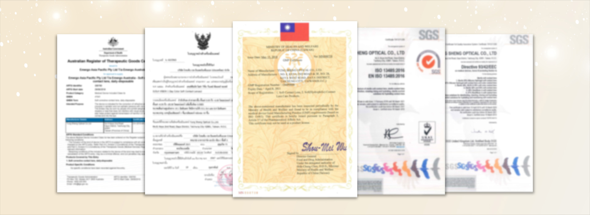 Major business is manufacturing and selling of soft contact lens and lens care products. With its innovative R&D team, advanced manufacturing facilities and professional marketing and sales group, Yung Sheng has successfully certificated by ISO 9001, ISO 13485, Japan FMA (Foreign Manufacturer Accreditation), European CE mark, Taiwan GMP (Good Manufacturing Practice), Korea GMP and Malaysia GMP, etc. to expand its global market.