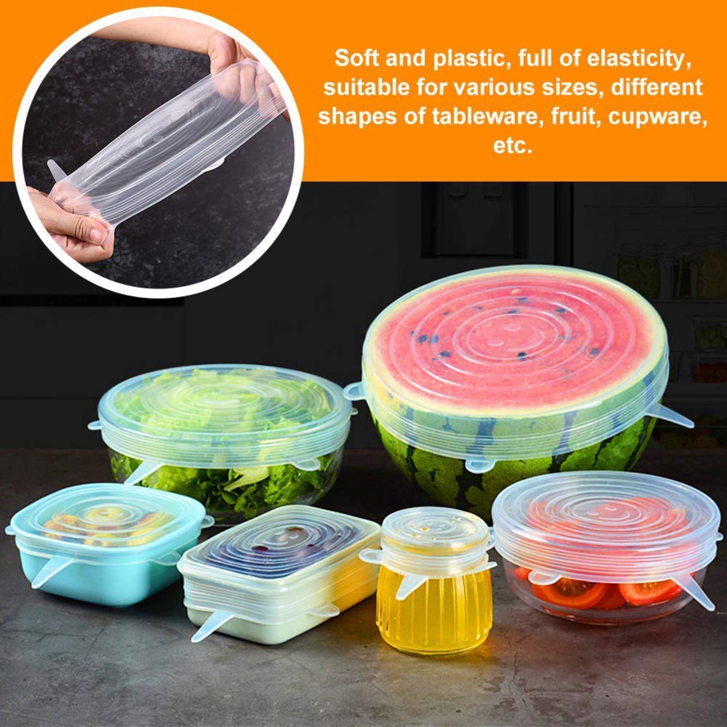 Healthy silicone stretch lids: 100% phthalate, lead, plastic and BPA free. Food grade and completely nontoxic. Without worrying about yours and your family’s health