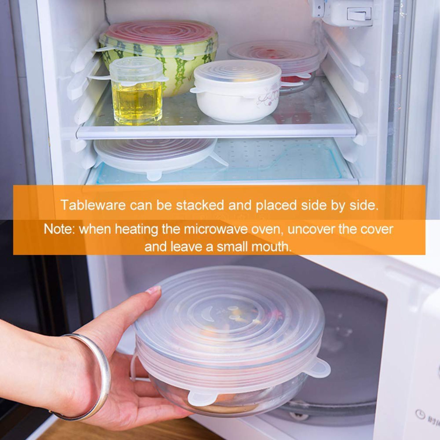Cold and heat resistant: silicone lids is resistant to low and high temperatures (from -20F up to 450F), feel free to put the stretchable food lid in the freezer or even in the microwave and dishwasher