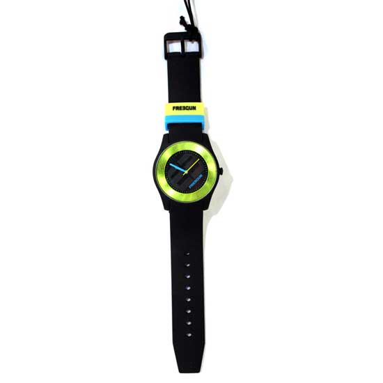 This is a wristwatch made of high-quality silicone in black. The bright green bezel with a metallic finish highlights this watch in a trendy way. The dial comes with neat patterns and stick markers.
