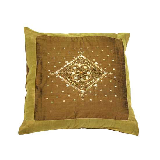 This deluxe cushion in two brown tones comes with bead decorations for an extra style. The silk material offers it a velvety and smooth touch. This fabulous silk cushion is a practical addition to your home.