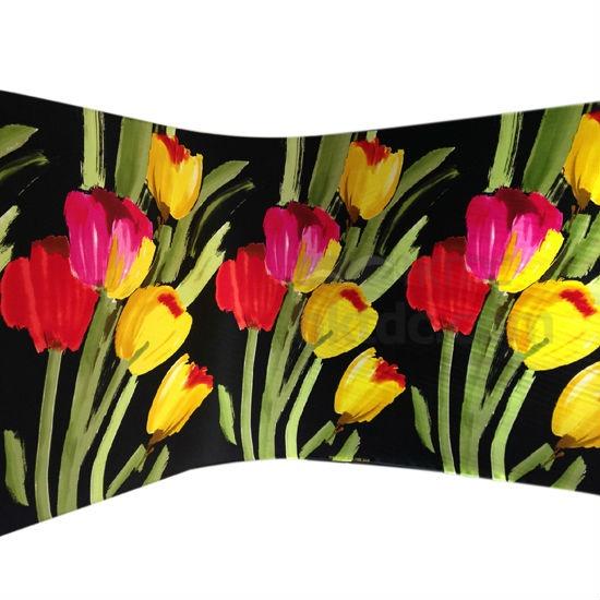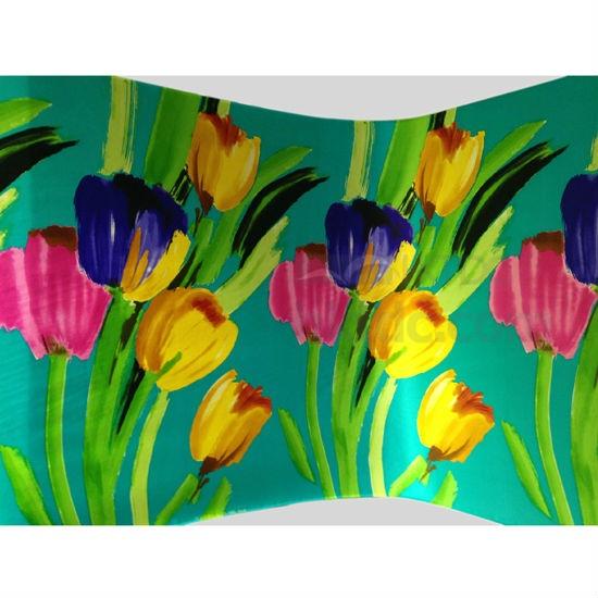 The vivid and vibrant colors of this silk fabric draw people’s attention effortlessly. The fabric flaunts a beautiful print of red and yellow tulips with green foliage in a black background. This silk fabric is an ideal piece for making clothes.