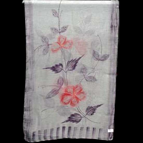 Showcased is a scarf that is utterly made of silk. This piece features sightly hand-painted floral patterns. It offers you warmth while visually complementing your attire.