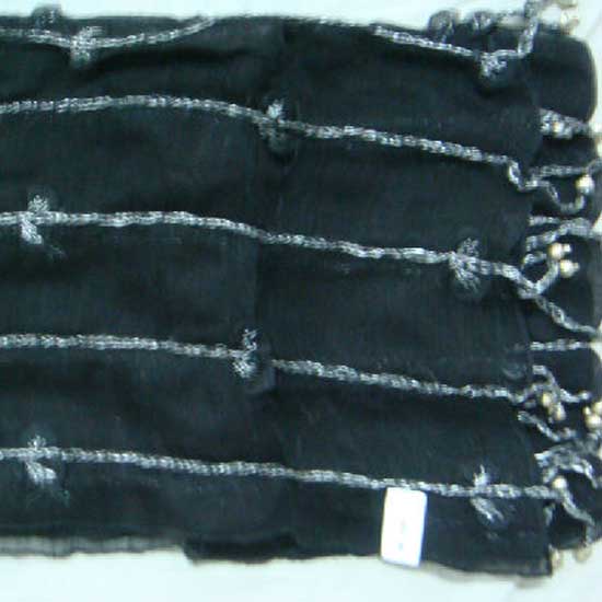 This silk scarf in black features subtle stripe patterns. Bead detail at the tassel lends a playful touch to this scarf. This comfortable scarf is suitable for all seasons.