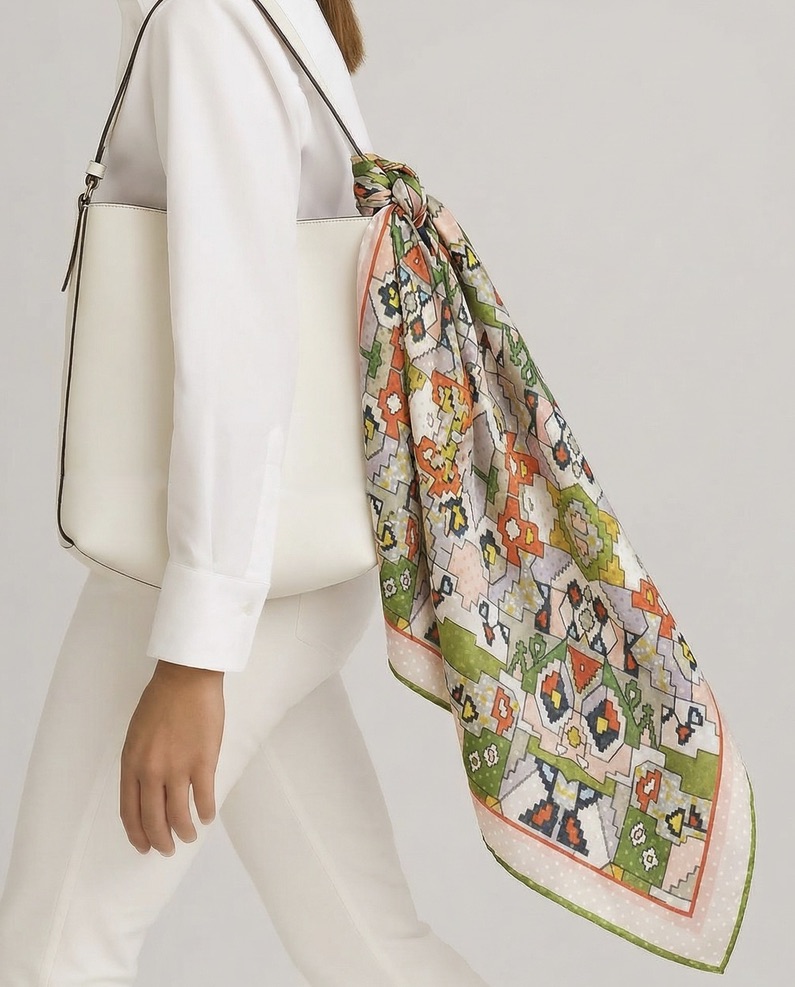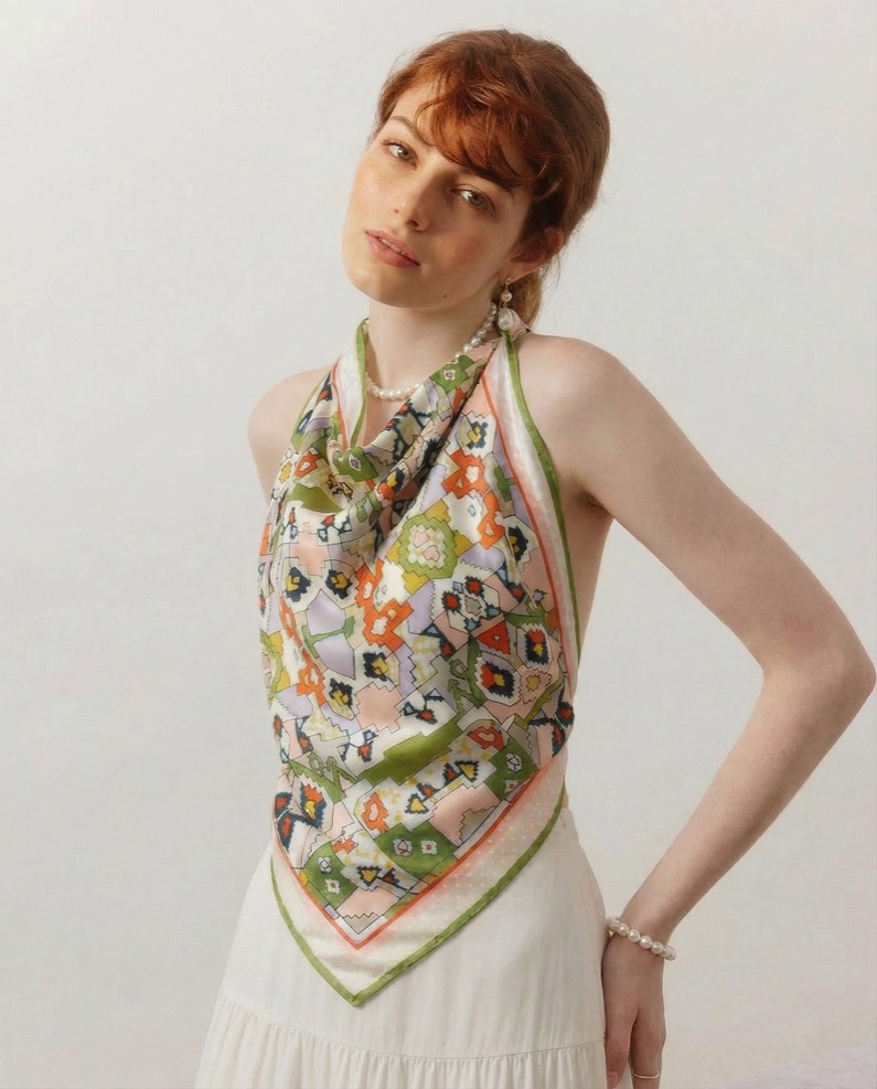 Through digital archiving and modern textile technology, we revive these vibrant historical patterns and reinterpret them into elegant silk scarves for modern life.