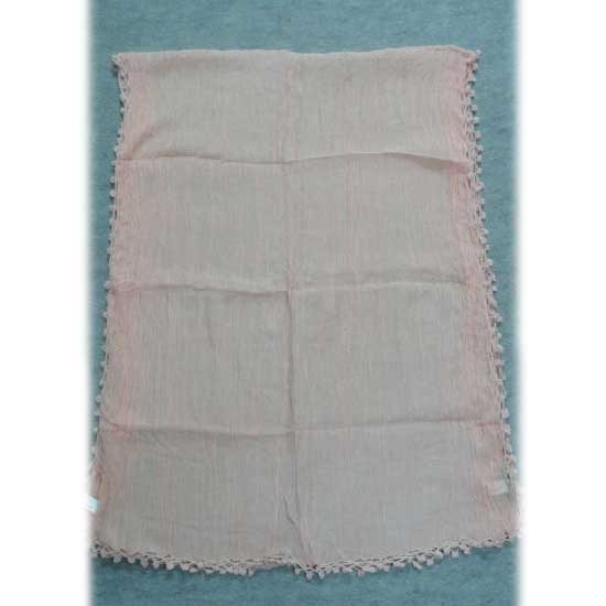 This white scarf features blended construction of silk and cotton. The top-quality scarf is ultra soft and smooth. It is accented with unique lace trimming for added appeal.