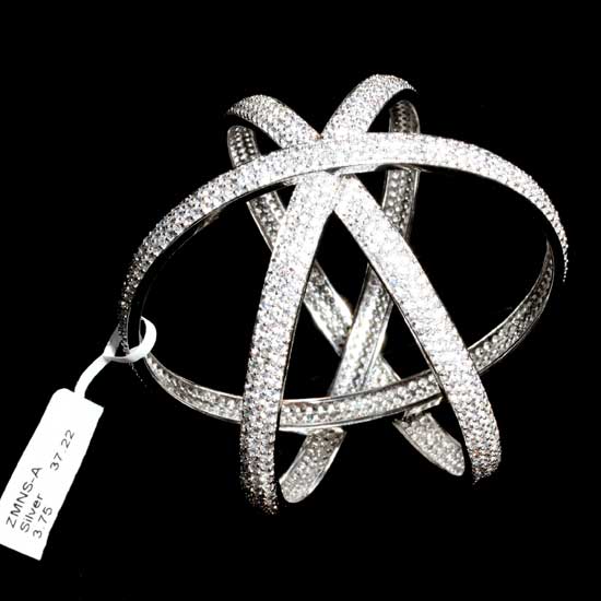 The 925 silver bangle set features a four-piece design. Each bracelet is encrusted with CZ stones all over to give brilliant luster. This silver bangle set adds volume to your outfit.