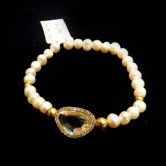 This is a silver bracelet that comes with a simple yet elegant design. It is accented with crystal stones and natural pearls for a decorative touch. This silver bracelet pairs with your outfit easily.
