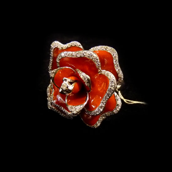 This fashionable brooch is designed in a red rose shape for an eye-catching look. It is made of quality silver and enamel for a stylish touch. This silver brooch will add elegance and charm to your look.