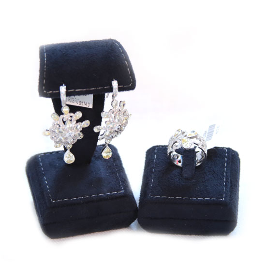 This silver CZ jewelry set comes with a pair of earrings and a ring. They are fully studded with clear CZ stones for irresistible luster. Present this luxurious jewelry set to your beloved one as a Valentine's Day gift.