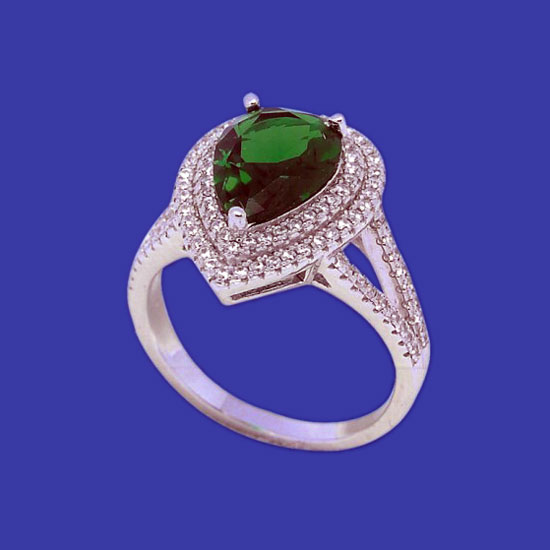 This is a quality silver ring with a fashionable appearance. It is finely crafted with sparkling diamonds and a colored stone as the centerpiece for an eye-catching look. This stunning ring surely is a great item for adding some glamor to your slender finger.