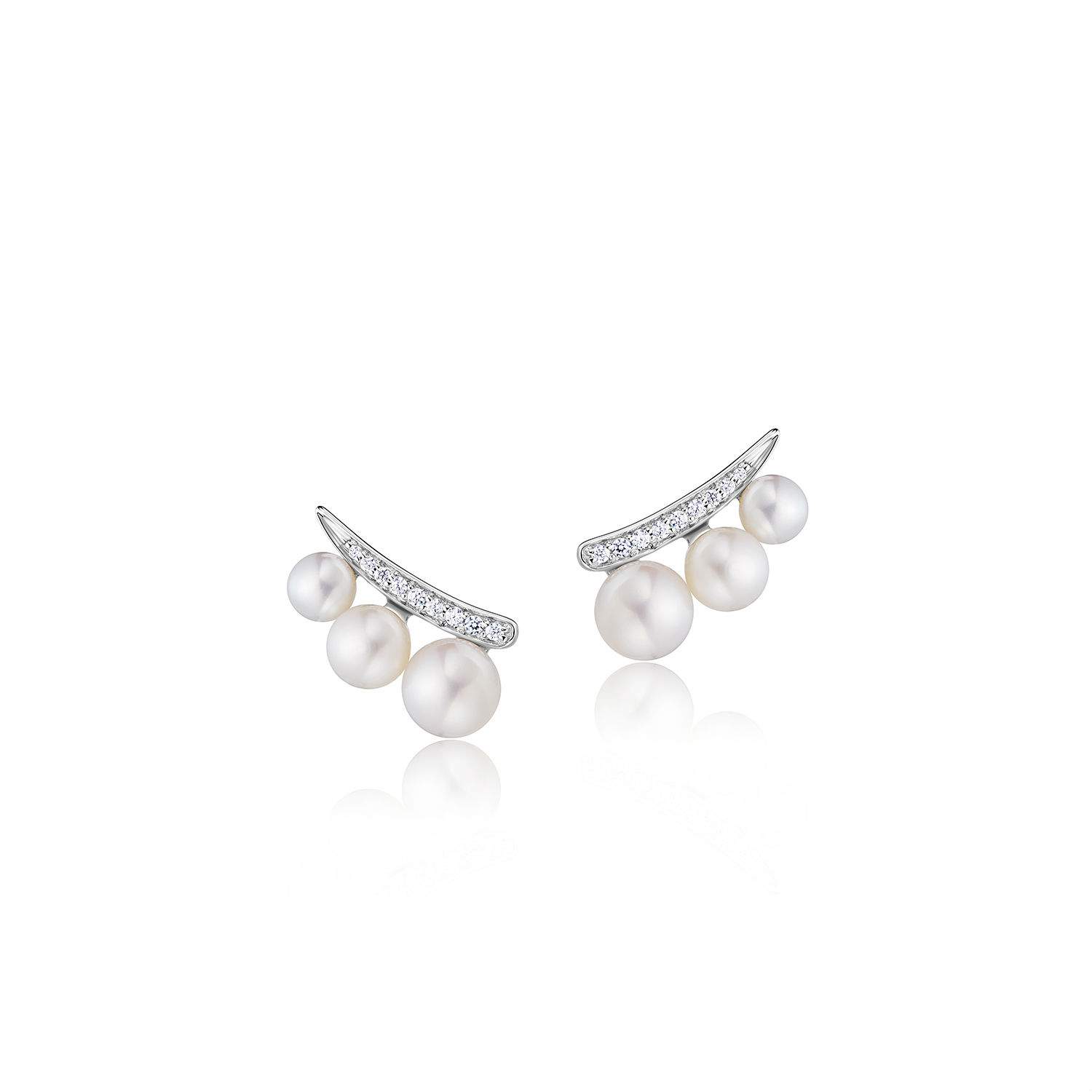 - Ear Climber - 4-6.5mm Graduate Freshwater button pearl - Cubic Zirconia (CZ) - 925 Sterling Silver - Rhodium Plated (also available in Rose Gold plated, Yellow Gold plated, Black Rhodium plated) - Modern and Stylish Designs Earrings for gifts - Mountings order are accepted