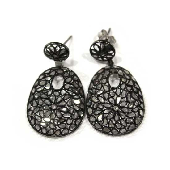 This is a pair of earrings with a unique and elegant appearance in black. It is meticulously decorated with individual sliced diamonds for a sophisticated touch. This pair of stylish earrings surely is a great addition to your jewelry collection.
