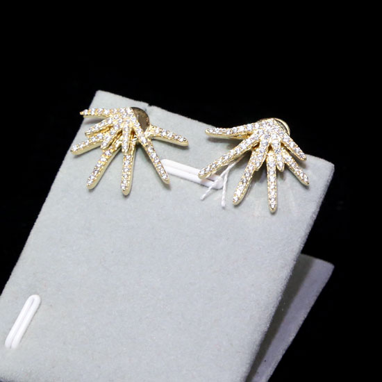 This is a pair of silver earrings with a fashionable and modern design. The earrings are crafted with sparkling cubic zirconia stones for added elegance. This pair of stylish earrings makes a pretty way to complement your chic look.
