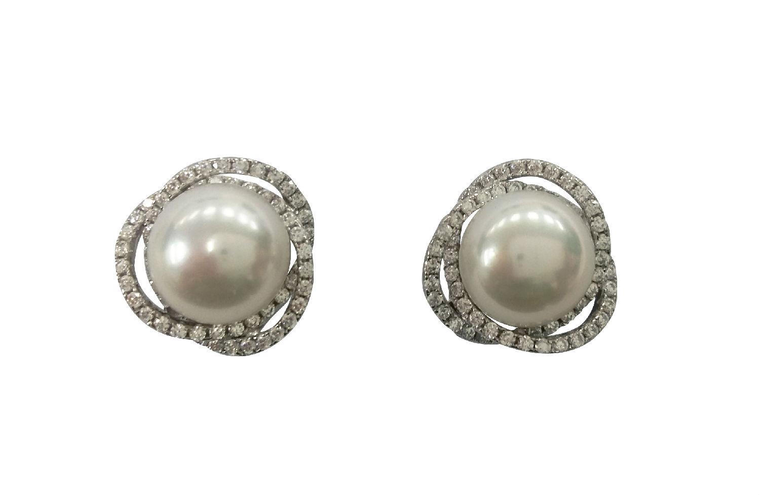 Silver Earring, Cubic Zirconia Stone and Fresh Water Pearl