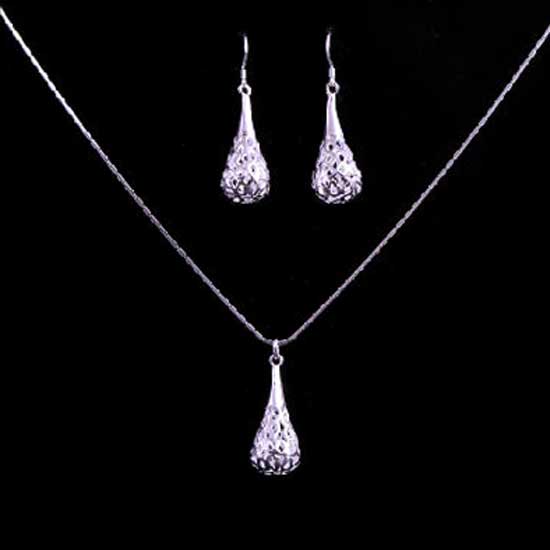 This silver earring and necklace have graceful and stylish appearances. The well-designed jewelries go well with you daily wear. Wear this earring and necklace for a more elegant dressing style.