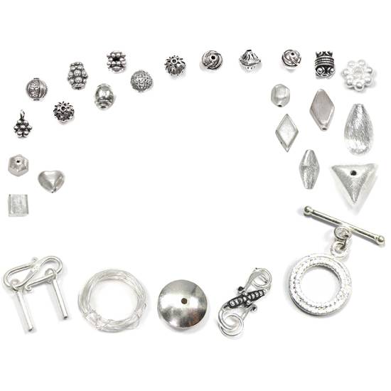 These are jewellery findings and beads made of sterling silver. The findings and beads are available in various design, sizes and shapes.