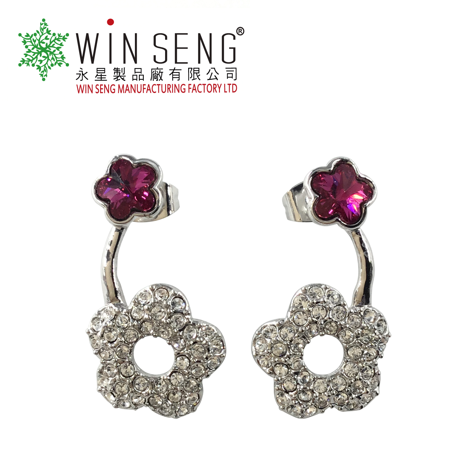 • Item Name: Silver gravel flower with purple crystal earring embellished with crystals from Swarovski