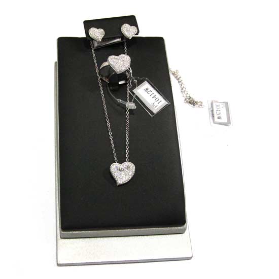 Shown here is a fine necklace and earrings set that flaunts shimmering beauty. This excellent set has unified heart-shaped design with a thorough gemstone micro-pave setting. This excellent set makes the perfect addition to your personal jewelry collection.