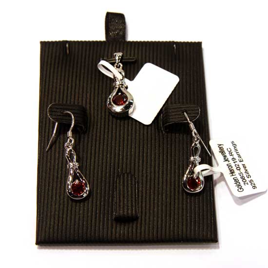 The shimmering handmade jewelry set includes a pendant and a pair of earrings. Delicately embellished with precious garnets in a graceful red color, the jewelry items exhibit stunning shine. The perfectly crafted jewelry set is a great choice to enhance your grand ensemble.
