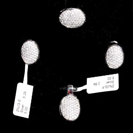 The four-piece 925 silver set includes a pair of earrings, a ring, and a pendant. All jewelry items are encrusted with CZ stones to give a shimmering look. Add a little sparkle to your outfit with this exquisite jewelry set.