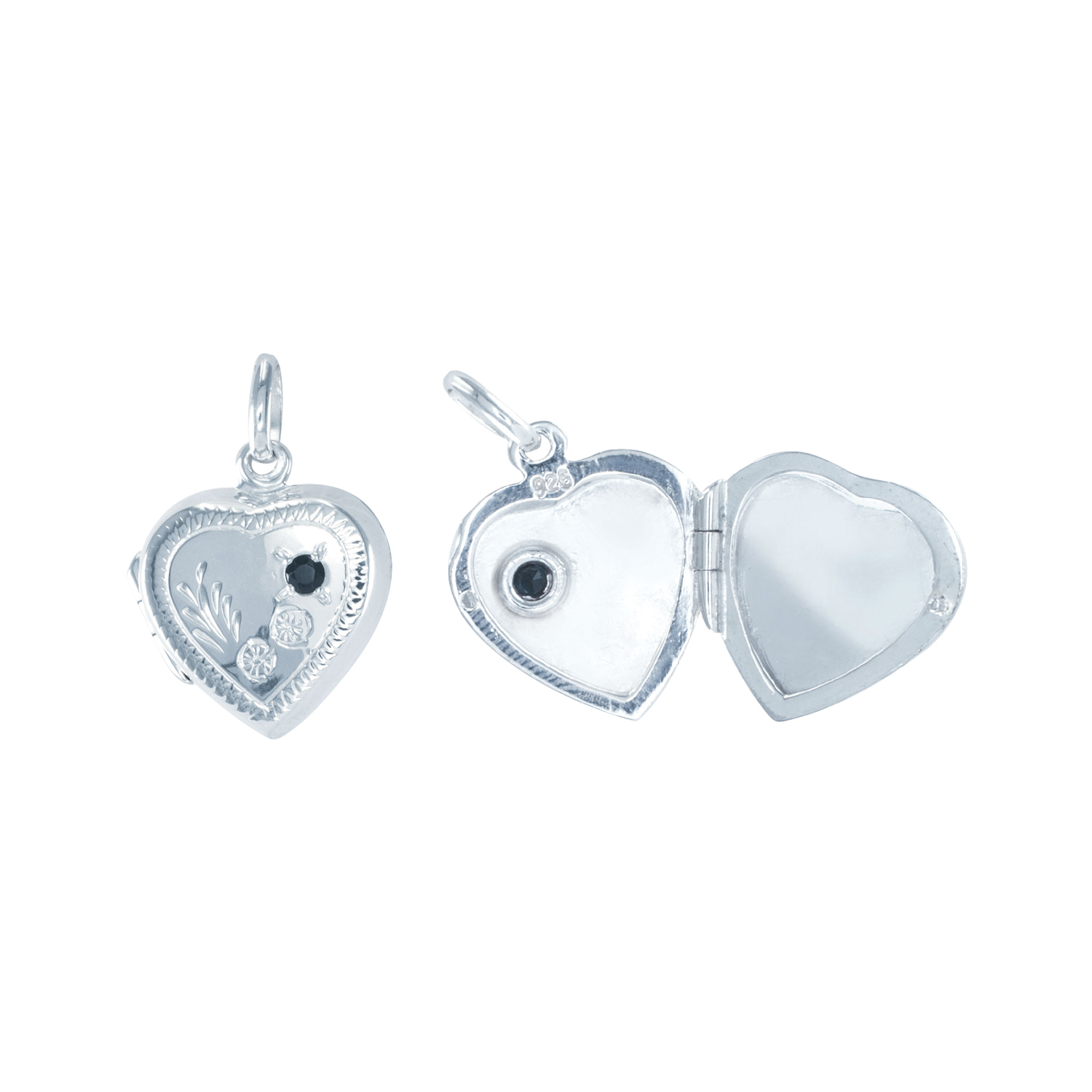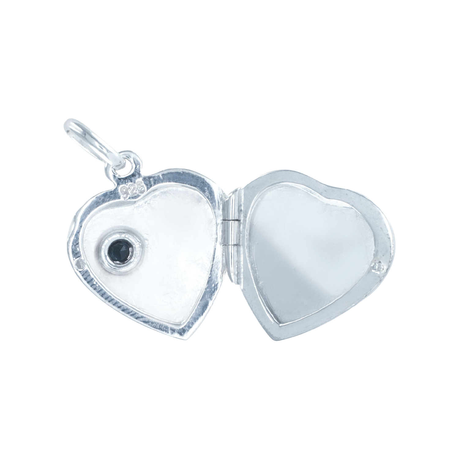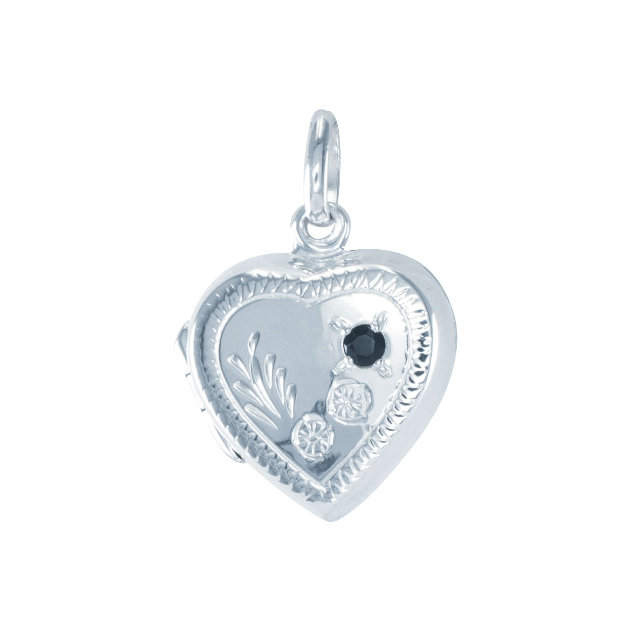 This is a heart-shaped locket coming with delicate engravings and a round sapphire. The silver construction offers the locket a shiny touch. This alluring locket is ideal for use as a pendant.