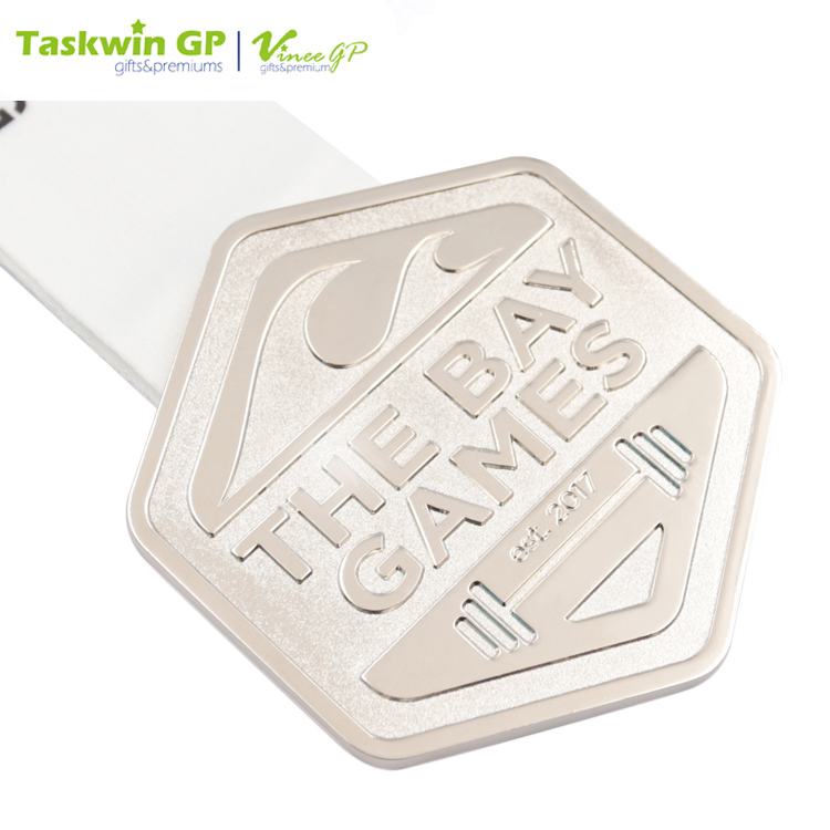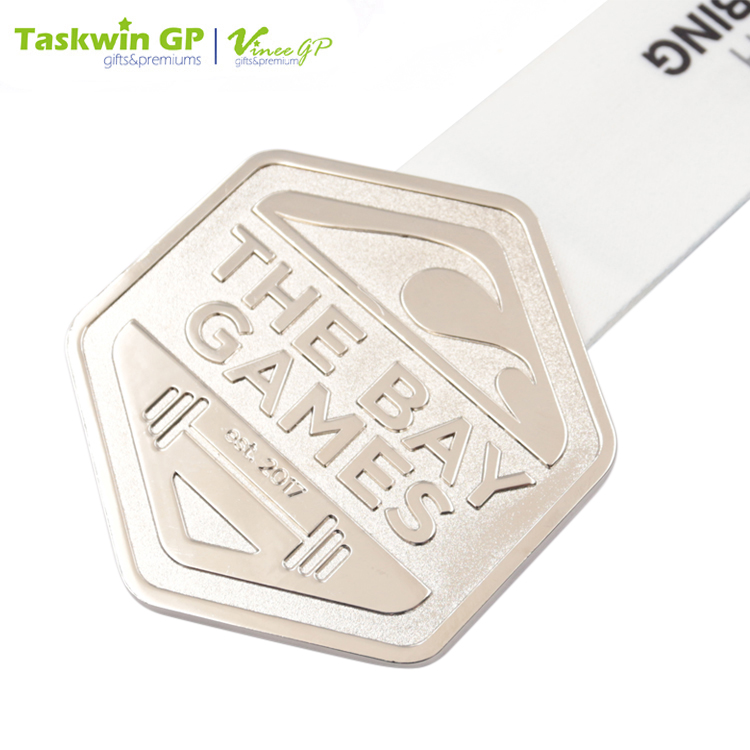 Reward the winner of the coming sports game with this silver medal. Flaunting skilful craftsmanship with die-casting zinc alloy, this award medal boasts a clean-looking construction with sleek lines and edges. Just feel free to customize the logo or design to suit your needs.