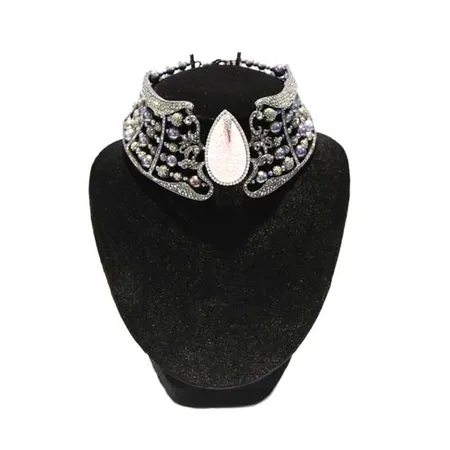 This elegant necklace comes with silver construction for enhanced durability. Different shapes of beads in a shiny finish with a teardrop ornament in the center accent this stylish necklace. This beautiful necklace is an ideal addition to complete your jewelry box.