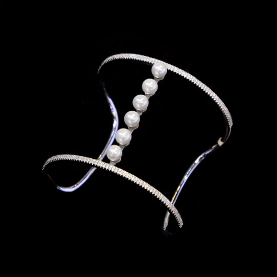 This 925 silver bangle comes with a stylish and unique design. It is crafted with precious pearls and cubic zirconia stones for added glamor. Embellish your wrist with this charming bangle.