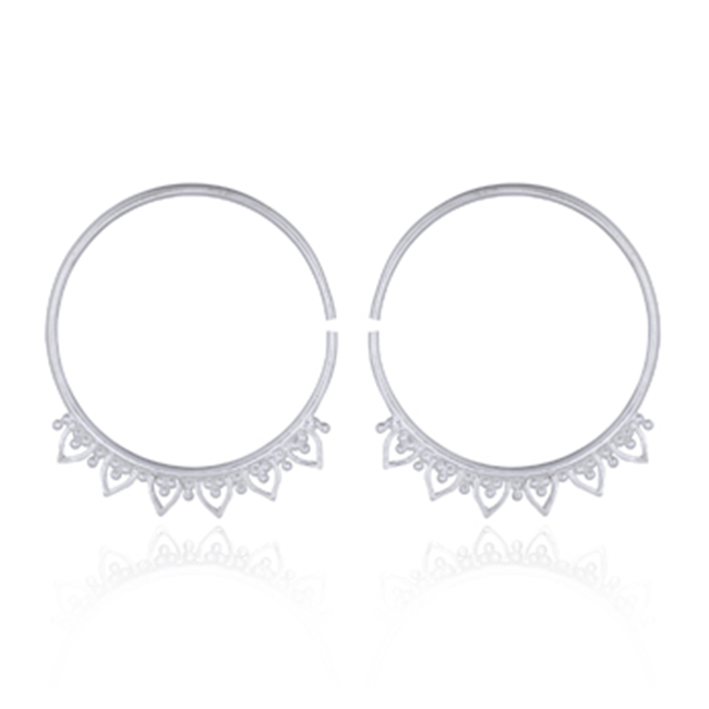 Silver Plated Bead Petals On Silver Round Drop Earrings