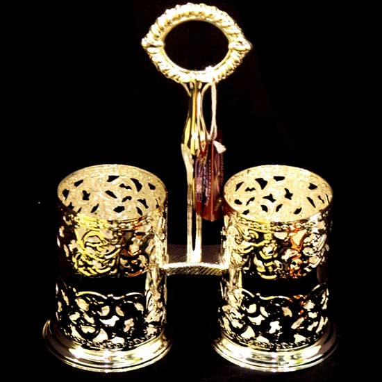 The silver-plated candle holder can accommodate 2 tea light candles. The laser-cut body creates flickering radiance to add ambiance to the surroundings. Entince your guests with this silver-plated candle holder.