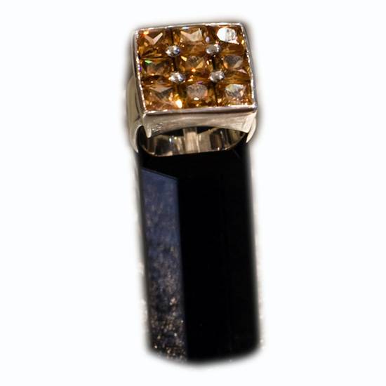 The silver ring flaunts a square-shaped design for a modern appearance. The glittering stones create a hint of glamor. This silver ring is a great addition to your jewelry collection.