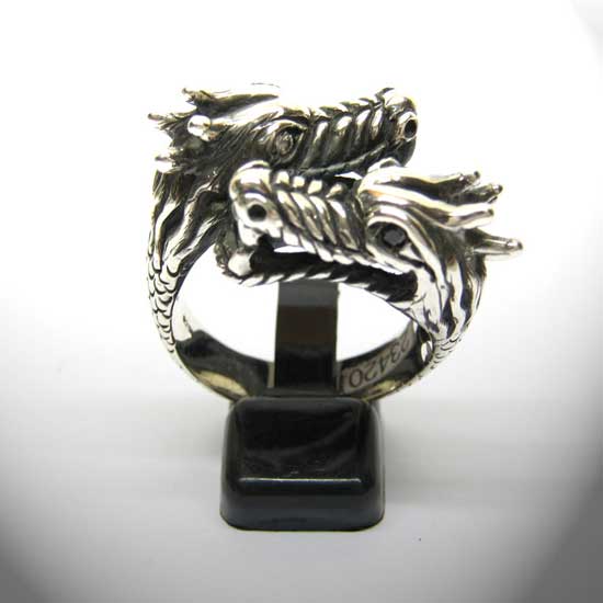 This featured ring comes with a masculine design with two dragons. The dragon joins and forms the band’s shape. Give a stylish punch with this dragon ring on.
