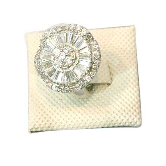 Highlighted is a gorgeous 925 silver ring with a plate-shaped charm. It is encrusted with shiny CZ stones to give a shimmering look. Add a graceful charm to your hands with this ring.
