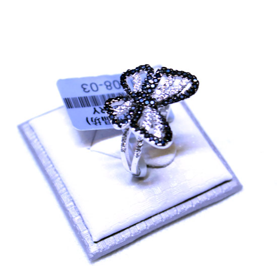 This is a finger ring made of quality silver. It features a vivid butterfly-shaped top for a touch of elegance. The ring is meticulously paved with sparkling CZ stones and semi-precious stones for added charm.