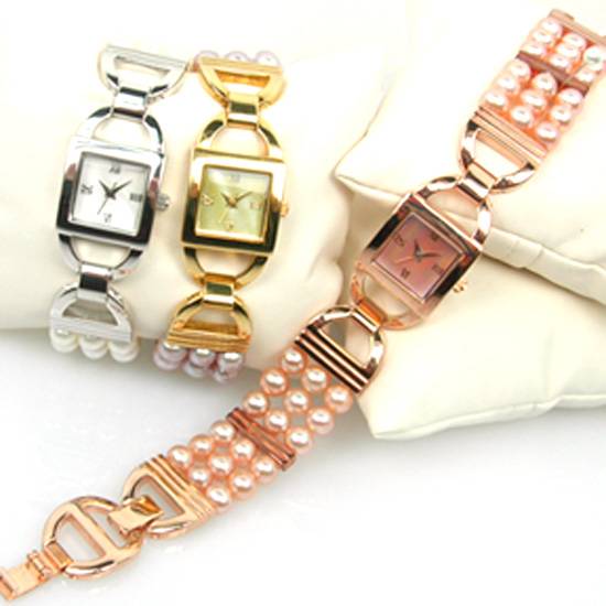 The bracelets of this series of watches are decorated with fresh water cultured shell pearls.