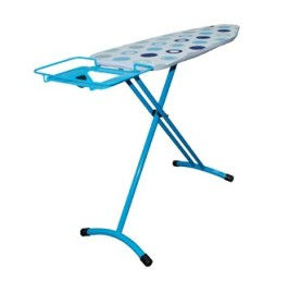 The ironing board features double locking mechanism which provides height adjustment and prevents board from falling down.