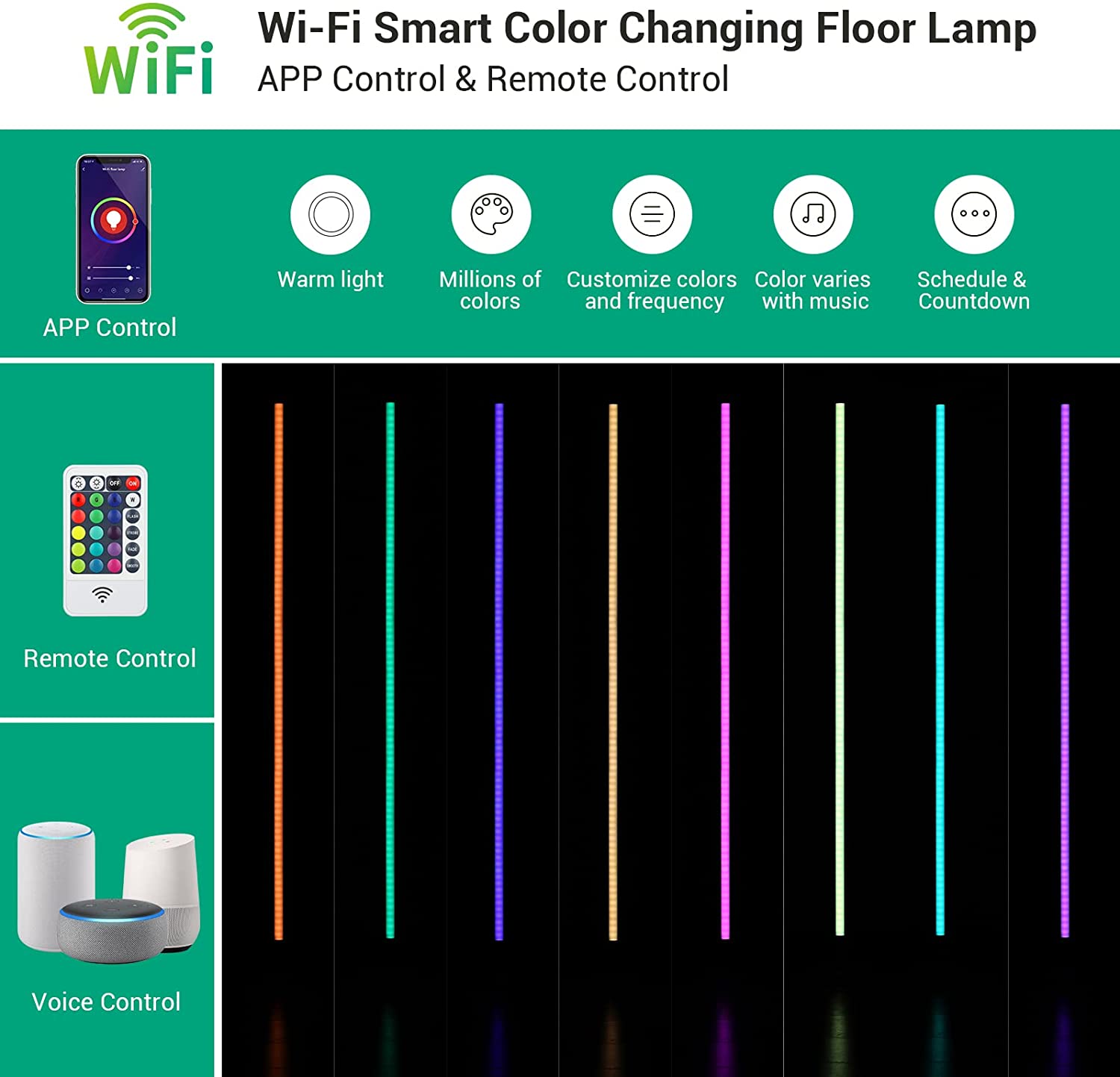 LED RGB smart color change W/ warm white floor lamp With 24 keys remote controller living home decorative light