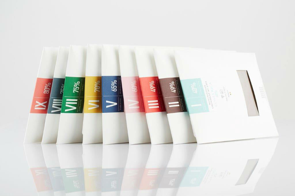 Single origin chocolate bars with cacao beans from Madagascar, Peru, Vietnam, Ghana, Costa Rica and Venezuela.