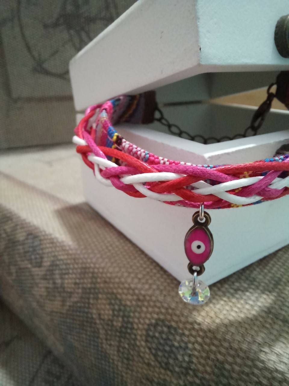 Originated from the headwear's modeling of the Pangcah The designer makes it into the bracelet The designer has a strong interest and love for the traditional six-strand weaving She can feel the performance of characteristic products closely related to life Brings out a sense of mission for cultural inheritance and continuity Adjustable length Colors may vary slightly due to computer screen settings Handmade by the designer, not mass-produced
