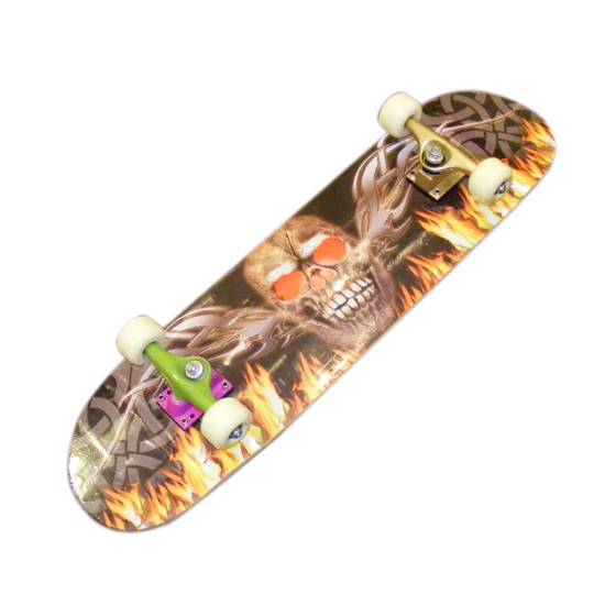 This wooden deck skateboard has double sided printing and its wheels are replaceable. Player can feel free to practise their own figure skate boarding by this safe and standard skateboard. The skateboard are available in assorted specifications and styles. Own this skateboard and have fun among friends.