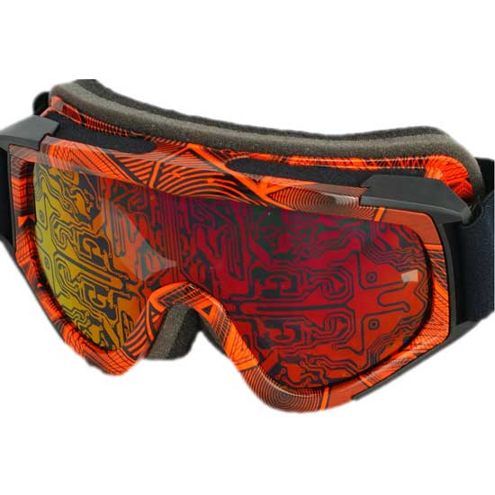 This pair of ski goggles is a functional accessory for skiing. An anti-fog design provides you with fog-free, clear vision. Elaborate computer chip-like patterns make these goggles look playful and stylish.