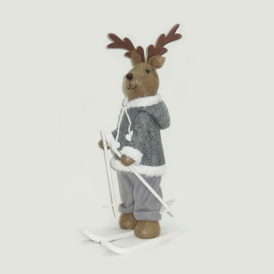This reindeer is excited to show you his exquisite skiing skills. He wears a black-and-white tweed jacket that is made with meticulous attention to detail. This lovely reindeer adds a festive touch to your home.