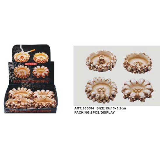 The ashtrays featured in this series come in a circular shape with many small skull decorations. Displaying outstanding craftsmanship, all the skull decorations are carved in great details. These skull ashtrays are novel gifts for smokers.